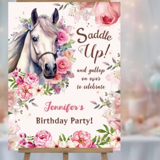 Saddla upp med vår "Girls Horse 6e, Bloom Flowers Saddle Up!" 🎉 Kick från firande i stil med detta vackra cowgirl-tema! Ta bort din nu och låt ponny party börja! 🎉 🎂