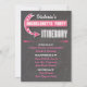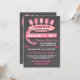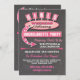 Super söta och coola inbjudningar till tjejhelgen med en retro skylt som välkomnar dina vänner till en möhippa för helgen och baksidan innehåller alla detaljer om de roliga aktiviteterna. Svart tavla-bakgrund och rosa och rosenskär färgpalett. Handritad illustration av McBooboo