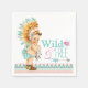 Tjejernas stam-baby shower servetter med söt bebis flicka iförd tealblå indian outfit och drömmfångare på en sydvästlig pastellfärgad aztekisk indian stil bakgrund med stilfull text Wild and Free med rustikt hjärta och pil. Du kan lägga till text för att anpassa och lägga till en bakgrundsfärg.