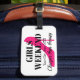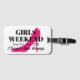 Tjejers helgresa resmål högklackat sko Bagage Tag. Anpassade bagagelappar för dina väskor och koffertar. Lyxig design för möhippa, brudlag, vänner, familj etc. Personlig text med neon rosa stiletto sko logotyp. Lägg till eget humoristiskt uttryck om önskas. Billigare än terapi. Kul för tjejers kväll ut, weekend, semester, helgdag etc. Neon rosa och svarta färger.