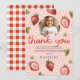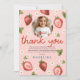 Tjejers Jordgubb Första Barn 1:a Födelsedags Foto Tack Kort