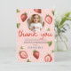 Den här söta och fantasifulla tack-designen för flickors 1-årsdag har förtjusande rosa jordgubbs- och blomillustrationer och kan personifieras med ditt eget tackmeddelande och ett foto av din lilla flicka. "Berry first"-designen har också ett matchande rött rutmönster på baksidan. Den perfekta bärodlingdesignen för din lilla älsklings födelsedag!
