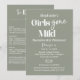 Denna stilrena inbjudan till Girls Gone Mild-fester för bruden-är-på-vägen- veckoslut vid stranden är cool och samlad i en lugnande, grönaktig färg. Typografin är en unik blandning av tryckt prydnadsskrift och handskriven text för ett djärvt och rent uttryck. Den vita texten mot den grönaktiga bakgrunden ger en sofistikerad och avkopplande estetik. Den dubbelsidiga inbjudan finns i flera olika papperssorter och storlekar. Nästan hela inbjudan är lätt att anpassa med brudens förnamn, datum för evenemanget, adress, RSVP-kontakt och detaljer för en helg vid en Airbnb, på hotell, camping eller var bruden nu vill koppla av med sina närmaste vänner. Denna moderna design är perfekt för alla årstider - vinter, vår, sommar och höst. Besök den växande kollektionen på denna produktsida eller på startsidan för Home Together för att hitta fler