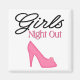 Tröjor för brudens sista fest. Avskedströjor med orden Tjejkväll och grafik av en rosa högklackad sko. Designen finns tillgänglig på t-tröjor, mössor, muggar, ölglas, resemuggar, knappar och mer.