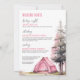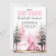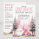 En bedårande rosa glamour campinghelg i skogen tema för möhippa. Med en övergripande rosa och grå färg med ett rosa tält, skogsträd och mer. Oavsett om din tjejvecka är på väg till Kalifornien, Montana, Maine eller om du stannar nära hemmet och vill fira med ett campingtema kan du göra detta till ditt eget. Ett modernt handskrivet eller script typsnitt, detta förtrollande tryck utstrålar charm och sofistikering. Resplanen finns på baksidan, men du kan byta ut texten för andra viktiga detaljer! Rosa tjejvecka camp möhippa inbjudan