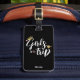 Resväskemärke för tjejer med guldkrona och rosa hjärtan. Personliggör det genom att lägga till ditt namn, semesterår och kontaktinformation på baksidan.