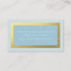 (OBS! Detta är inte äkta guld-folie, det är en tryckt bild).En sofistikerad visitkortsmall med "folie" från guld och subtil chevron gräns och ljusblå bakgrund. Vit text. Bakgrunden färg (blå) är anpassade. Klicka på "Anpassa" och använda färgrutorna på högerna om du vill ändra bakgrunden till färg. Med pipetten verktyg ge får du ännu fler färgrutor, och "avancerad" länk öppnar hela spektrumet. Du kan också kopiera och klistra in ett hex-värde om du har ett. Underbar för dem i mode och företag som skapar smak; evenemangsplanerare, designers i insida, hårstilister, konstnärer som tillverkar konstverk med mera. Kontakta mig om du vill ha en matchande affärskort-innehavare
