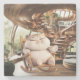 En söt, knubbig kattkaraktär sitter innehållslöst i en rockstol, håller i kopp, mitt i ett vackert designat insida av trä med spiral trappor och en stor grej. Utrymmet är fyllt av naturligt ljus, ge det varmt och inbjudande atmosfär. Digital Art Photoshop CS5