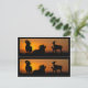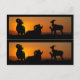 En liten flock tjockhornsfår lägger sig till rätta för natten. Deras silhuetter står mot den flammande solnedgången bakom dem. Datorkonst av Kathie Miller.