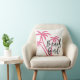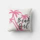 Persika den tropiska dekorativ kudde handflatan i rosa, svart och vit med handflatan träd-grafik i bakgrunden och i snyggt- och trendig-texten som säger Beach Girl på ena sidan och har en solid färg samordnad rosa på andra sidan. Designad för dam eller flickor som en sommar eller hela året runt tropisk dekorkudde för hemmet.