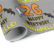 Den här skämtsamma och skrämmande halloins födelsedagstext som omger papper design har ett stort nummer "26" och meddelandet "GRATTIS PÅ FÖDELSEDAGEN," plus ett anpassade namn. Det finns också bilder av ett spöke och ett fladdermus på framsidan. Att packa pappert som detta kan vara ett roligt för att packa gåvor eller presenter som ges till någon som föddes på Oktober 31an (Halloween) och som firar sin tjugosjätte födelsedag. [~Z0000411]