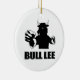 Det är tjuren Lee, förkroppsliga av en kung fukämpe och huvudet av en tjur.