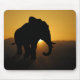 En storartad tjur som elefanten silhouetteds starkly mot, avfyrar av inställningssolen.