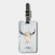 Denna bagagemärkre har charma, lantlig look. Bakgrunden är i en wood struktur för vit. Tjurskallen och de rosa blommorna är vattenfärger. Personifiera med ditt namn.