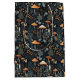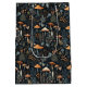 Den här viskdesignen har terracotta toadstool svamp på en mörk marin blå bakgrund med skogsbär och fauna.