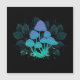 Mysterösa, bioluminiscent, hallucinogena, ljusa toadstooler med buskar av träskplantor på natten, mörk, glödande bakgrund. Växande svampar. Goblincore, Mushroomcore