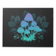 Mysterösa, bioluminiscent, hallucinogena, ljusa toadstooler med buskar av träskplantor på natten, mörk, glödande bakgrund. Växande svampar. Goblincore, Mushroomcore