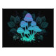 Mysterösa, bioluminiscent, hallucinogena, ljusa toadstooler med buskar av träskplantor på natten, mörk, glödande bakgrund. Växande svampar. Goblincore, Mushroomcore