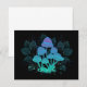 Mysterösa, bioluminiscent, hallucinogena, ljusa toadstooler med buskar av träskplantor på natten, mörk, glödande bakgrund. Växande svampar. Goblincore, Mushroomcore