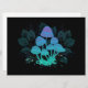 Mysterösa, bioluminiscent, hallucinogena, ljusa toadstooler med buskar av träskplantor på natten, mörk, glödande bakgrund. Växande svampar. Goblincore, Mushroomcore