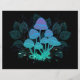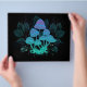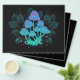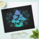 Mysterösa, bioluminiscent, hallucinogena, ljusa toadstooler med buskar av träskplantor på natten, mörk, glödande bakgrund. Växande svampar. Goblincore, Mushroomcore