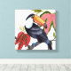 Toco Toucan jag med Melissa Wang. En enda tukan är genomträngd på en gren med tropiska löv. | 164390Z