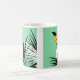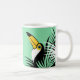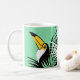 Stiliserad tukanfågelkonst bland tropiska palmblad