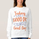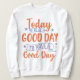 This image features a motivational quote that reads: “Today is a good day to have a good day.” The text is styled with a mix of orange and purple colors, using various decorative fonts. The words “Today” and “GOOD DAY” are in bright orange, while “IS A” and “TO HAVE A” are in soft purple. Small star elements add a cheerful and uplifting touch to the design. Overall, it conveys a positive vibe and is perfect for products that aim to spread good energy and inspire a great start to the day.
