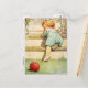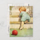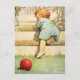 Todla Pojke. Vintage av en söt småbarn-pojke som klättrar upp utomhus, troligen för att få sin röda boll på gräset. Illustration av Jessie Willcox Smith.