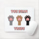 Do you love cats? Show your toe bean tribe with this mouse pad! This mouse pad features three cute kitty paws with the words toe bean tribe in pink letters with a gray outline.