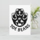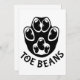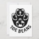 Ett svart tass med svarta bönor som tönor, med texten "Toe Beans" under tass.