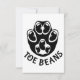 Ett svart tass med svarta bönor som tönor, med texten "Toe Beans" under tass.