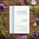Elegant Toga Party-inbjudan inspirerad av antiken Grekland i blått med stenelement. Perfekt för ditt evenemang med tema Antikens Grekland eller Antikens Rom!