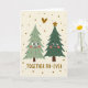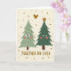 This adorable Christmas greeting card is a must-have for spreading holiday cheer! 🎅🏼 The main design boasts two lovable Christmas trees, one light green and one dark green, with beaming smiles on their faces. 🎄 A golden heart hovers between them, symbolizing enduring love. The playful pun "TOGETHER FIR-EVER" is elegantly written below in a cozy brown font, adding a touch of warmth to the design. The light background and floating golden dots create a festive and inviting setting for your message of love and commitment. 🎁 Perfect for your boyfriend, girlfriend, husband, or wife, this card is sure to bring a smile to their face this holiday season.