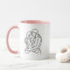 Personalize this romantic mug with your name and your partner's name. The elegant design features a minimalist line art illustration of a couple in a tender embrace, paired with the meaningful phrase "Together, our hearts speak one language," celebrating your deep connection and understanding.