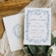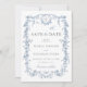 Toile de Jouy Bröllop spara datum Dusty Blue Datumet
