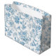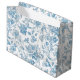 Elevate your gift wrapping with our new gift bag design featuring an elegant Toile-de-Jouy Chinoiseries blue floral pattern, against a custom white background.