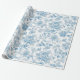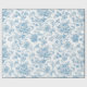 Elevate your gift wrapping with our new wrapping paper design featuring an elegant Toile-de-Jouy Chinoiseries blue floral pattern, against a custom white background.