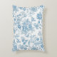 Elevate your bedding with our new accent throw pillow design featuring an elegant Toile-de-Jouy Chinoiseries blue floral pattern, against a custom white background.