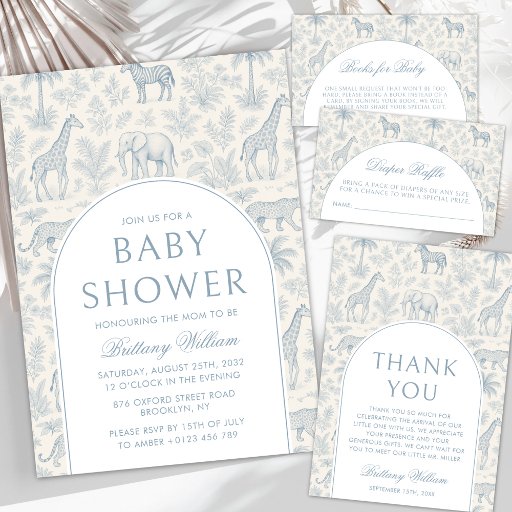 Toile De Jouy Safari Blue Boy Shower Inbjudningar