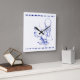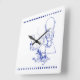 En strålande toile-inspirerad klocka i blått vilje färg med lekfull kattunge som rompar i ett badrum.