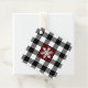Försköna dina julklappar med dessa svart-vita plaid-presentetiketter som har en central röd och svart Buffalo-platt kvadrat med en stor vit snöflinga på. Anpassa dem med text eller ett foto.