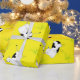 Inpackning som är papper med den roliga illustrationen av den tokiga kon och grönt gräs