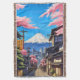 En liten Tokyo Street med Mt Fujis syn på avstånd. AI Anime stil skapade konst.