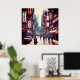 Tokyogatan - japanska gatubyxor cyberpunk stil, vattenfärgsmålning, retro, vintage, rustik, struktur, utmattat färg, avverkad, konst, graverad stil, dynamisk, mycket detaljerad illustration av konceptet.