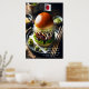 Indulge i en smak av Tokyo med den här exquisite Japanska Teriyaki Burger. En högkvalitativ nötköttsbit, glaserad med en rik och en hänsynslös teriyaki-sås, är fylld med en delikat wasabi-majo, skarp, sönderdelad huvudkål och alla kapade i en mjuk, rostad ris-flour bun. En liten japansk flagga lägger till en elegant, medan knackpinnar vilar bredvid plattan och fyller det här kulinariska mästerverket.
