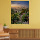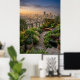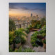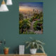 Fly till en fridfull takträdgård med utsikt över en levande stad vid solnedgång. Frodig grönska, blommande blommor och mjuk stämningsbelysning skapar en lugn oas högt ovanför stadens siluett. Den varma glöden från den nedgående solen smälter vackert samman med stadsbelysningen och ger en perfekt balans mellan natur och modernt liv. Denna lugnande och visuellt rika scen ger avkoppling och elegans till alla utrymmen. Perfekt för vardagsrum, sovrum eller välbefinnandeområden förvandlar detta konstverk väggar till lugna reträtter fyllda med skönhet, harmoni och inspiration.
