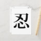 Ett vykort med tecknet "忍", vilket betyder tolerans och uthållighet på kinesiska och japanska. Det är också startkaraktären för ord "Ninja" på japanska, som ofta representerar samma sak. Det här är definitivt ett vykort med ett meddelande! )
