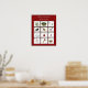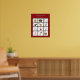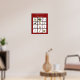 Varje kvadrat i det röda rutnätet poster utskriften i mönster innehåller en färgstark vattenfärgsåtergivning för var och en av de tolv juldagarna med varje dags nummer i det övre lämnat hörnet. Uttrycket "Min äkta kärlek gav mig" i vitt överst är färdigt. Från min digitalt skapat originalbild.