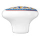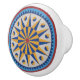 Den här keramiska knoppen har ett traditionellt Pennsylvania, nederländskt tolvpunktsstjärnskylt med regniga motiv från Lehigh Valley. Växelblått och gult stjärnor utstrålar från ett rött centrum med fetstil, där var och en av raindropparna yin-yang-stil symboliserar förnyelse och balans. Ett skalat blått gräns med ett rött yttre ring fullbordar det plana konstverket. Tolvpunktsstjärnan är fullständig och skyddad, medan regndropparna betyder välstånd och harmoni i livets cykler. En meningsfull accent för skåp, lådor och möbler, den här knoppen ger också karaktären åt DIY-projekt, jordbruksbostad insida eller hörapparaterade décor. Blanda och matcha med andra kulturarvskonstruktioner i Charming-butiken i Tassar för ett samordnat konst utseende.